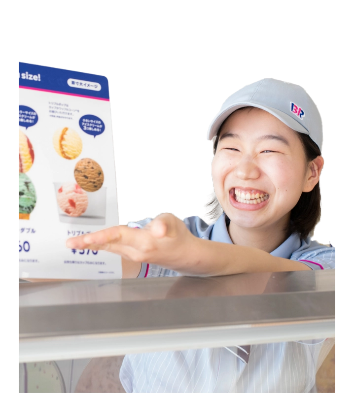 人見知りな性格で、人と仲良くなるのに時間がかかるタイプですがサーティワンアイスクリームの仕事は楽しく、お客様との日々のコミュニケーションの中でやりがいを見つけられました。