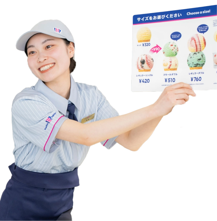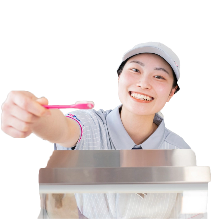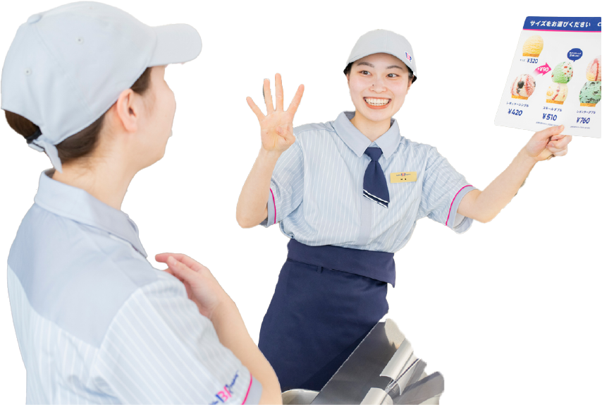 人見知りな性格で、人と仲良くなるのに時間がかかるタイプですがサーティワンアイスクリームの仕事は楽しく、お客様との日々のコミュニケーションの中でやりがいを見つけられました。